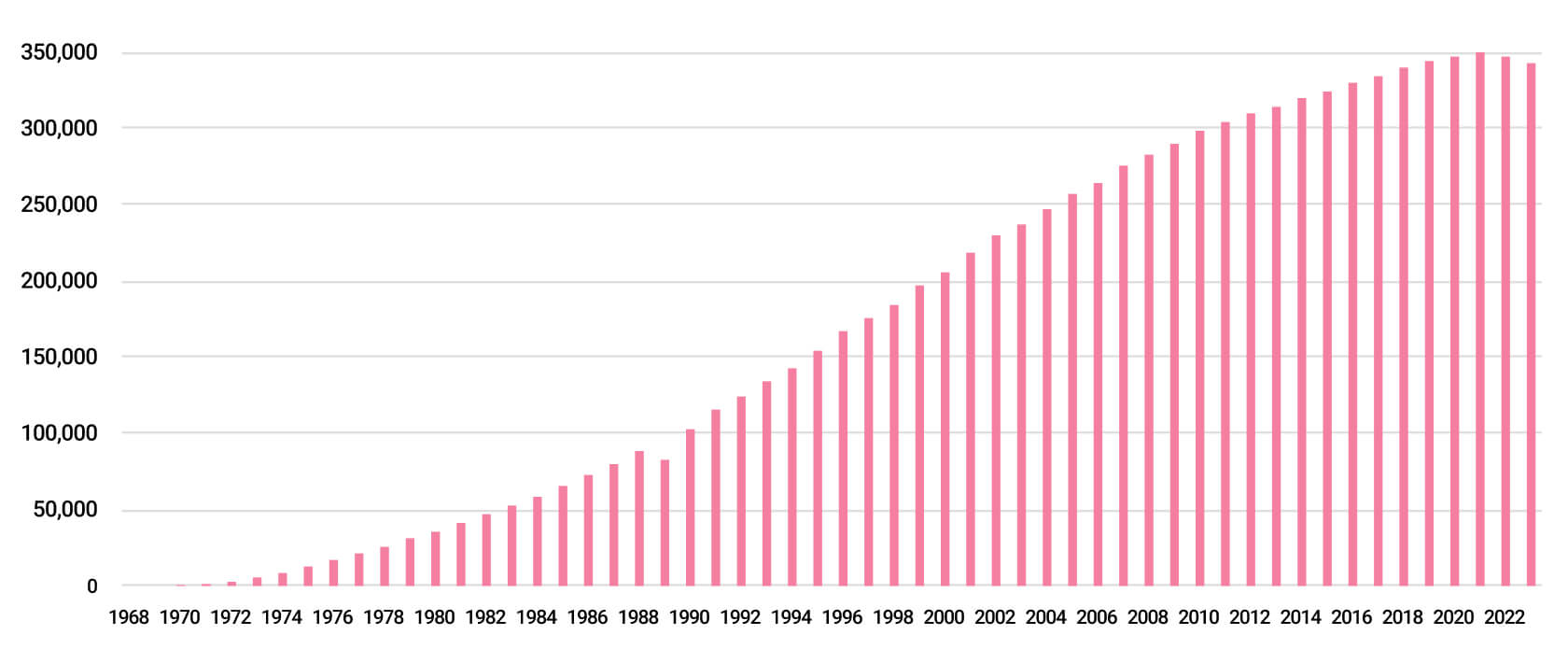 日本透析医学会の統計調査、2023年末の慢性透析患者に関する集計より