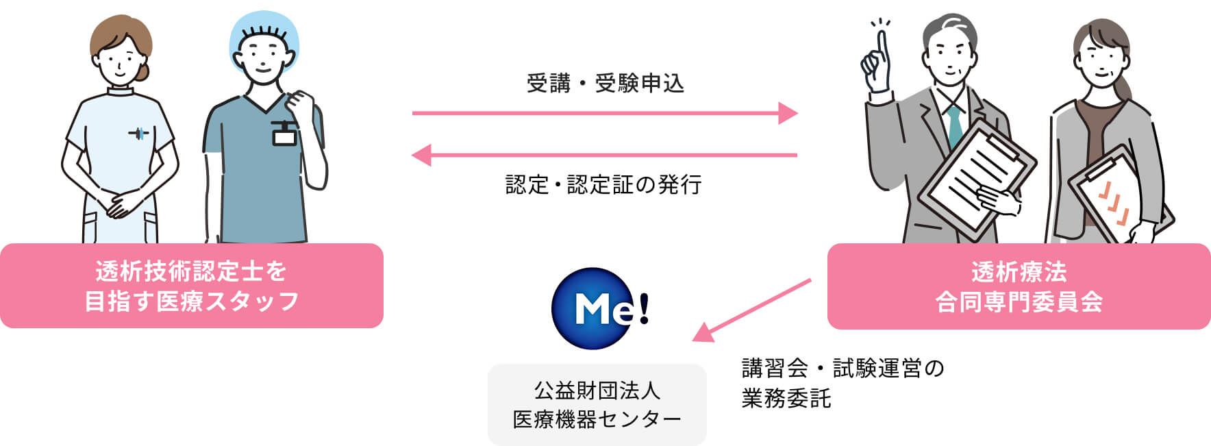 透析療法の実務経験年数をもつ臨床工学技士、看護師、准看護師を対象に、透析医療のエキスパートやスペシャリストとしての専門知識の習得と技術向上を目的とした、5年更新制の資格です。